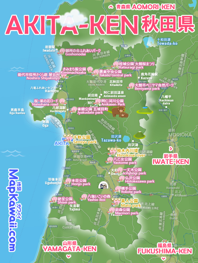 秋田・横手・大館・由利本荘、秋田県の桜の名所 お花見、わかりやすいデジタルマップをお作りしています。抱返り渓谷・角館武家屋敷・秋田駒ヶ岳・乳頭温泉郷・小安峡・田沢湖・十和田湖・須川高原・湯瀬渓谷・きみまち阪など、行ってよかった絶景モデルコース、47都道府県の名所、電車でドライブで日帰りで行くお勧めルート2026を続々追加中です。
