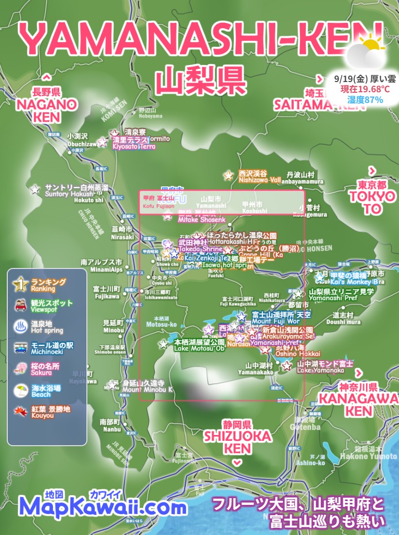 Yamanashi Viewspot Sightseeing on Japan Travel Map 2026 Explore the Best Japan Tourism Guide Kofu Fujiyoshida Fuefuki Hokuto Yamanashi