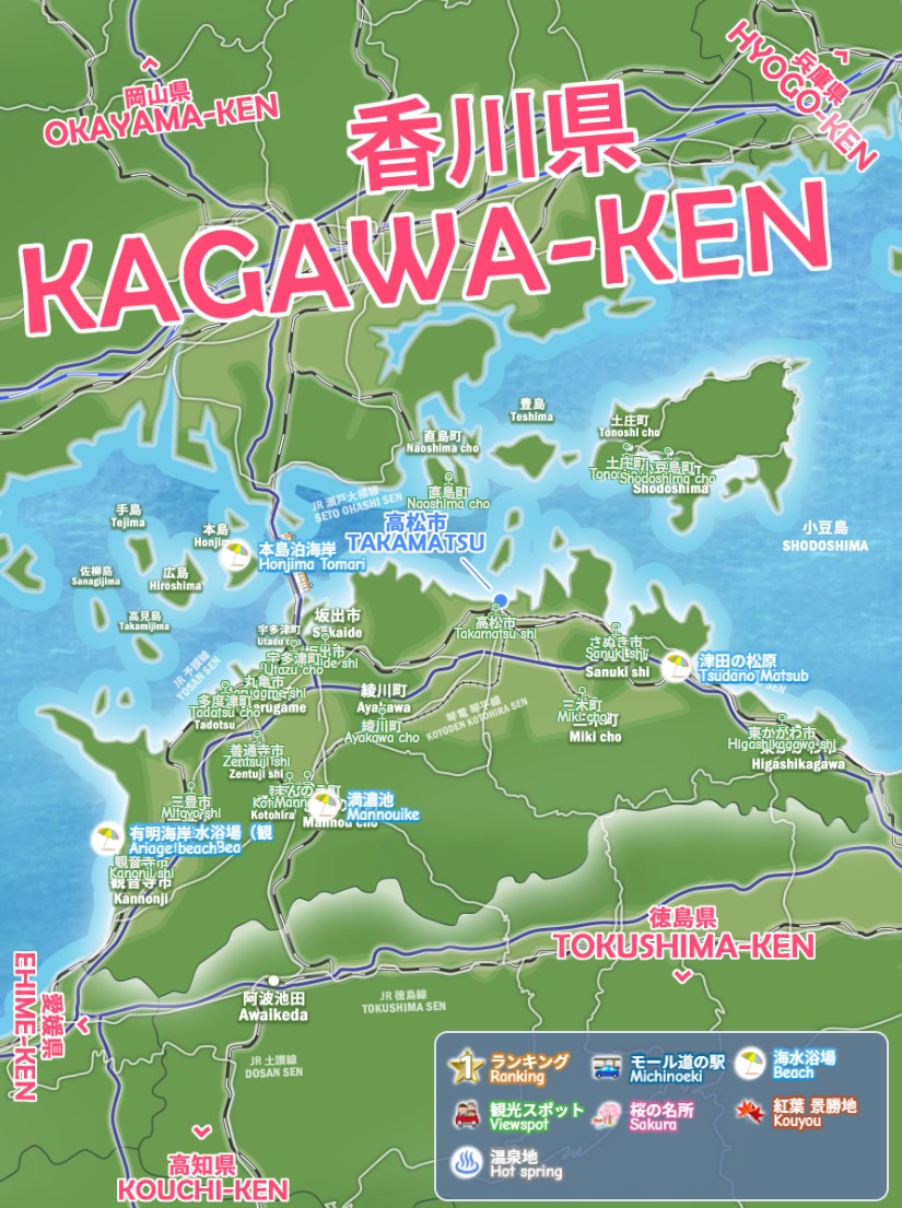 Kagawa Summer Beach on Japan Travel Map 2026 Explore the Best Japan Tourism Guide Takamatsu Marugame Sakaide Kanonji Zentsuji