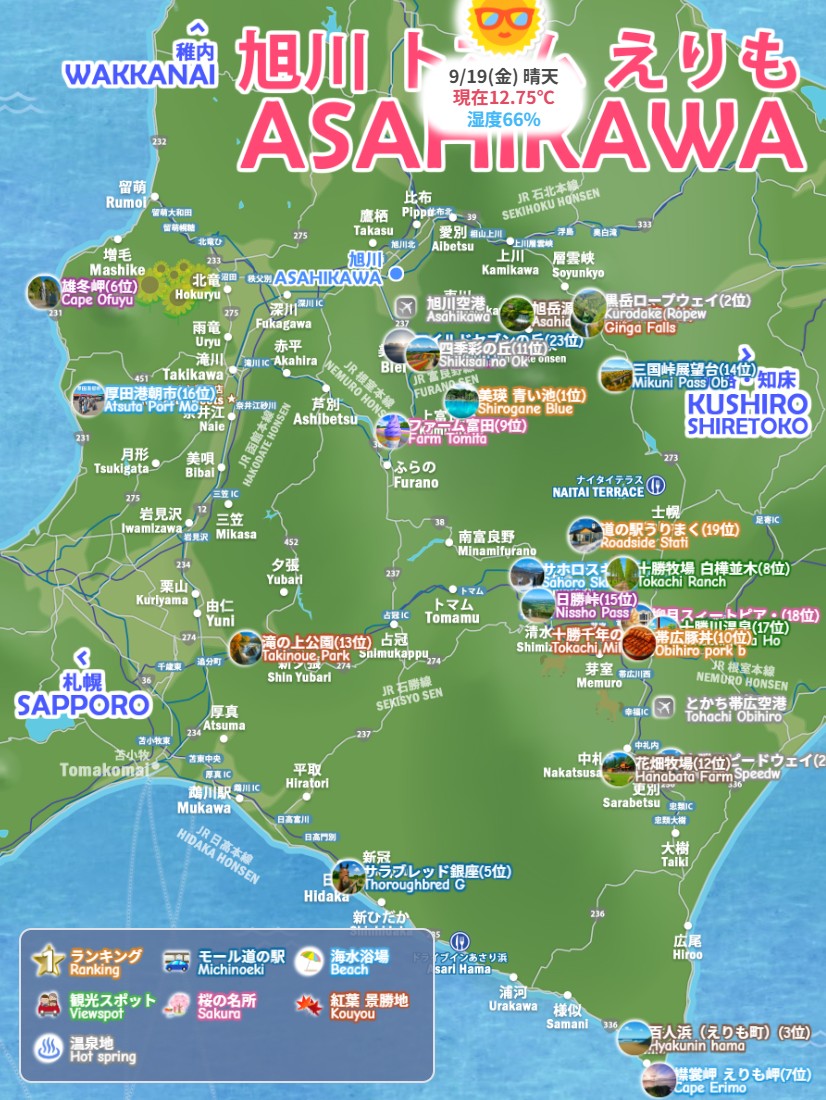 【必見】旭川・トマム・えりも☆キュート観光地図|穴場ランキング&モデルコースガイド