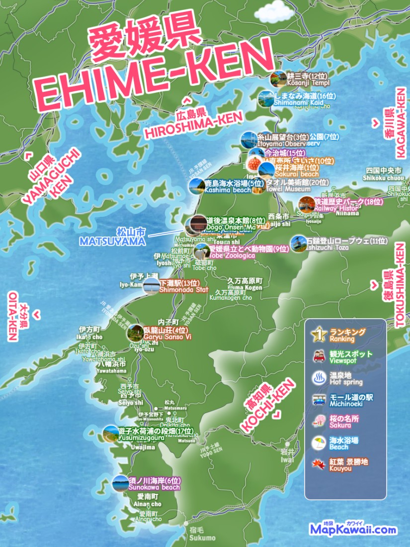 Ehime Recommended Ranking on Japan Map Guide 2026 Explore the Best Scenic Spots Matsuyama Imabari Uwajima Yawatahama Niihama