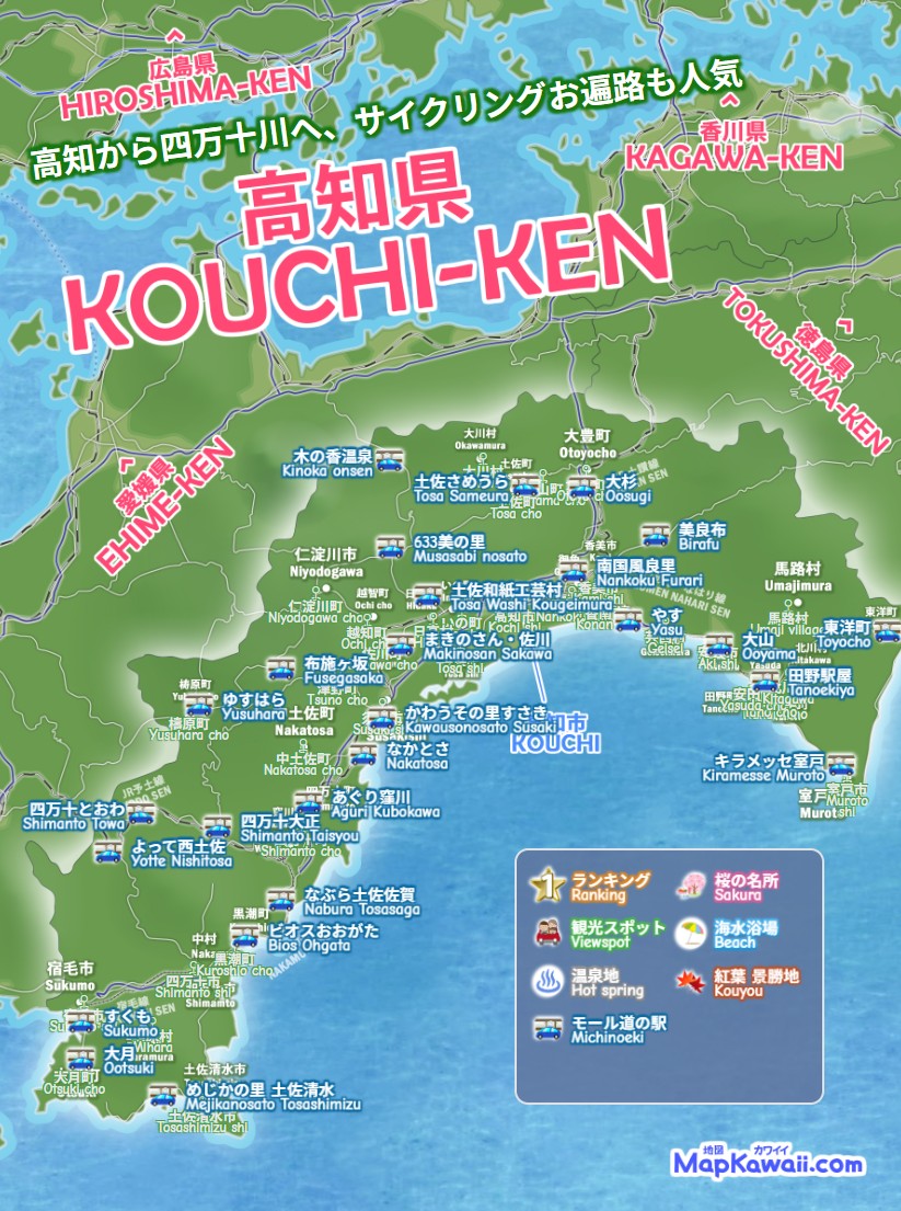 高知市・南国市・土佐市・須崎市・香南市、高知県の道の駅 ショッピングモール、わかりやすいデジタルマップをお作りしています。桂浜・高知城・坂本龍馬記念館・四万十川・仁淀川など、今すぐ行きたい絶景モデルコース、電車でドライブで日帰りで行くお勧めルート2026を続々追加中です。