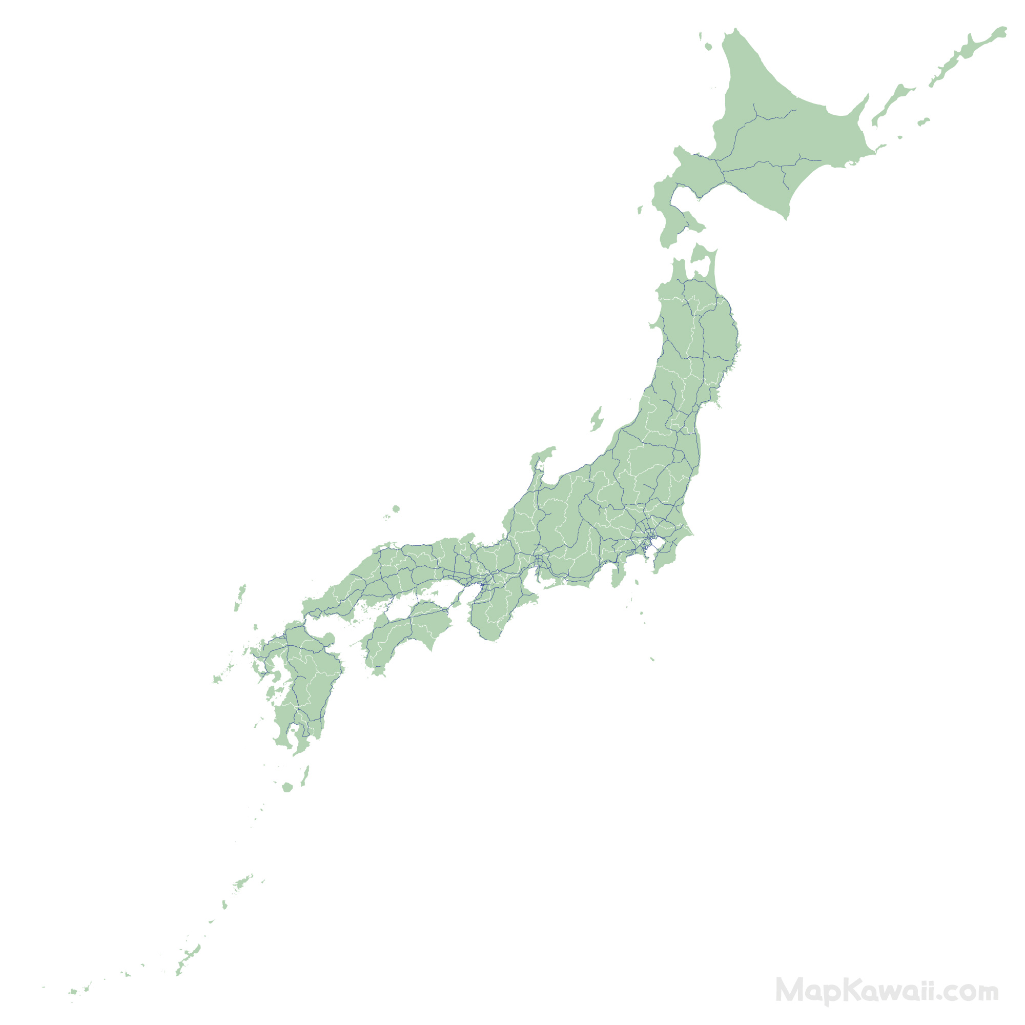 カワイイマップのフリー素材、無料ダウンロード。日本地図の高速道路を見やすいブルーで、46都道府県が区切られた見やすい日本地図です。商業利用OK