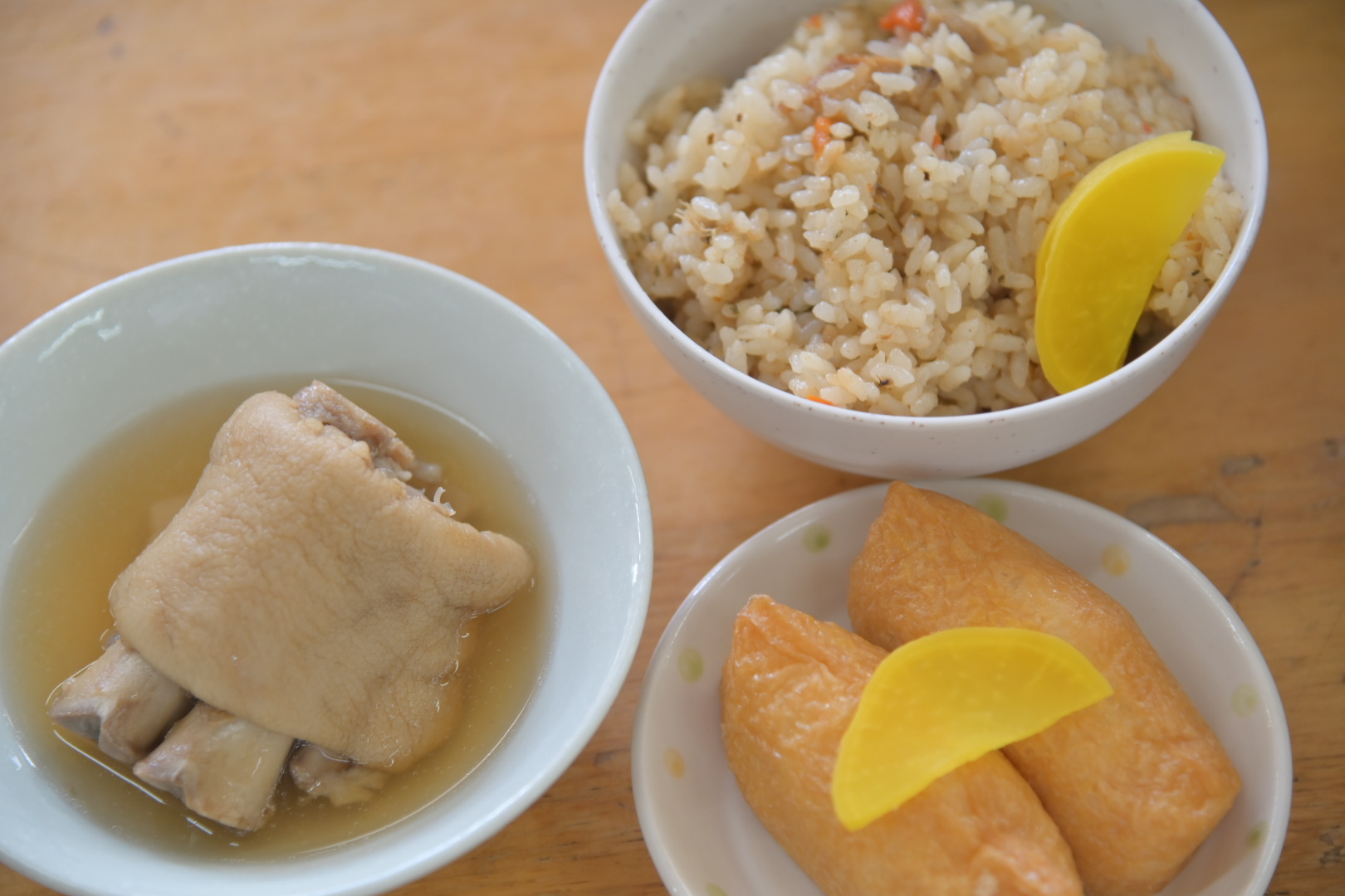 とろとろとろのてびち、油が乗って臭みもなく美味しい。ジューシーはさらさらとした炊き上がりで食べやすく、味も薄味だからなんだか美味しく健康になれそうなご機嫌な味。いなりは沖縄らしい、お酢がしっかり効いて、すっぱ美味しい〜と言いたくなる。ぜひ試してみたいですね。