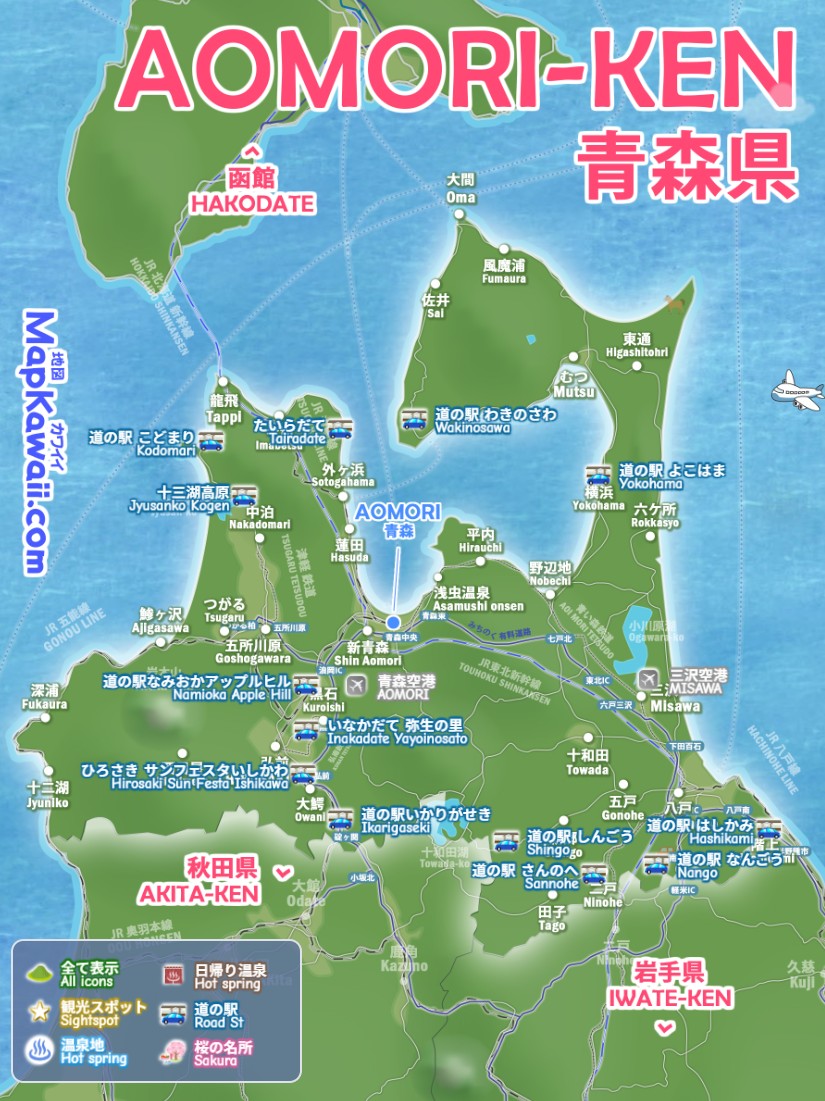 青森・弘前・八戸・十和田、青森県の道の駅 ショッピングモール、わかりやすいデジタルマップをお作りしています。奥入瀬渓流・十和田湖・弘前城・八甲田山・恐山・浅虫温泉・三内丸山遺跡など、今すぐ行きたい絶景モデルコース、電車でドライブで日帰りで行くお勧めルート2026を続々追加中です。