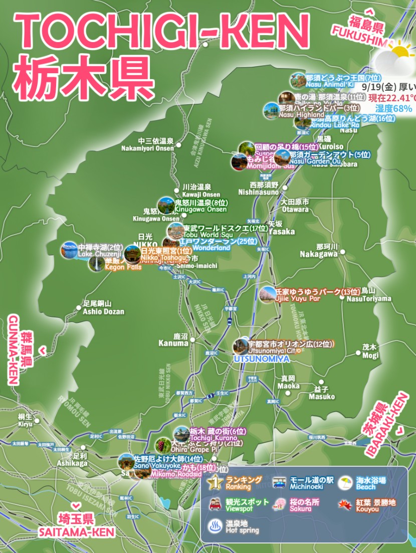 宇都宮・小山・足利・佐野、栃木県の秋の紅葉 景勝地、わかりやすいデジタルマップをお作りしています。いろは坂 華厳ノ滝 戦場ヶ原 塩原渓谷 茶臼岳など、今すぐ行きたい絶景モデルコース、電車でドライブで日帰りで行くお勧めルート2026を続々追加中です。