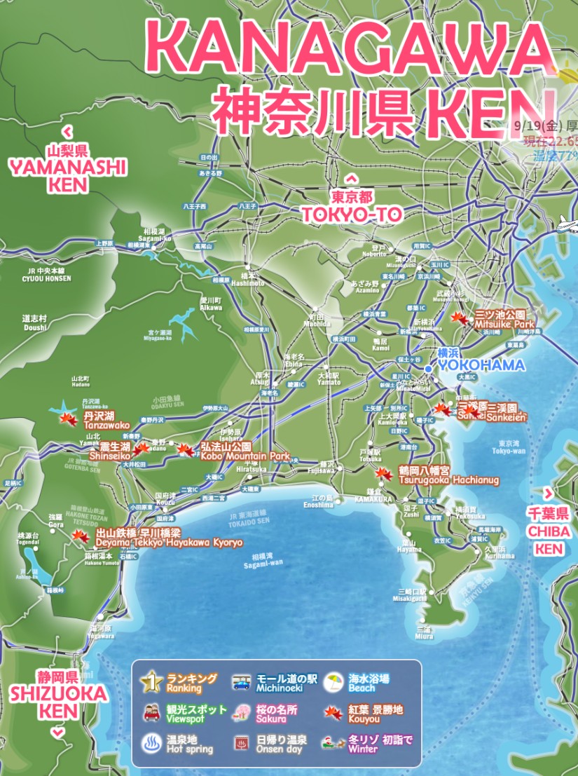 横浜・鎌倉・箱根、神奈川県の秋の紅葉 景勝地、わかりやすいデジタルマップをお作りしています。三溪園 大山寺 長谷寺 高尾山 県立四季の森公園など、今すぐ行きたい絶景モデルコース、電車でドライブで日帰りで行くお勧めルート2026を続々追加中です。