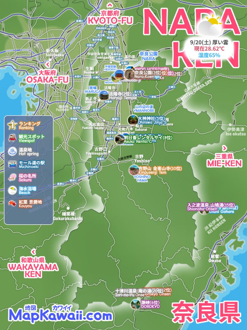 奈良の人気観光地から、マニアックな穴場スポットまで独自の可愛いランキング!わかりやすい地図でモデルコースやイベントカレンダー、グルメなレストランやお土産・特産品に無料でリンク。