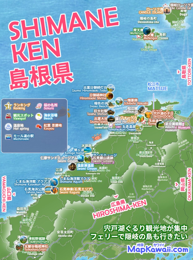 島根の人気観光地から、マニアックな穴場スポットまで独自の可愛いランキング!わかりやすい地図でモデルコースやイベントカレンダー、グルメなレストランやお土産・特産品に無料でリンク。