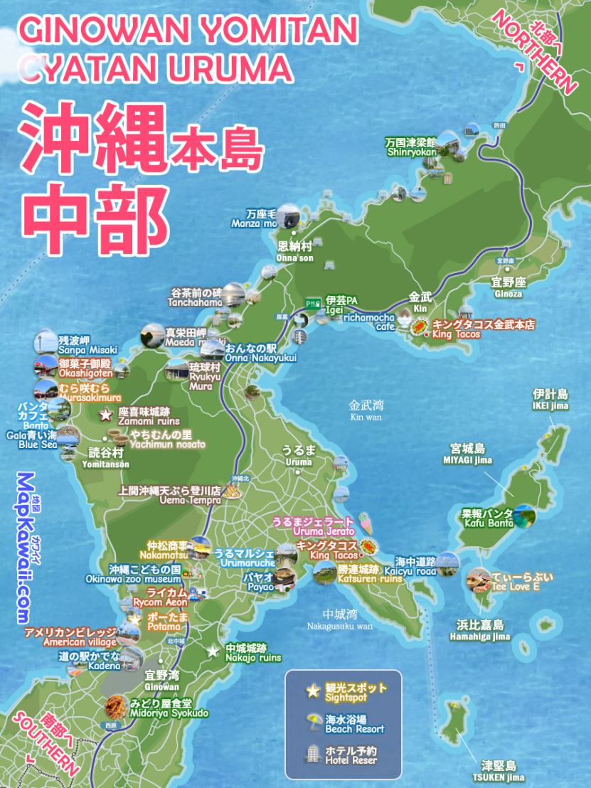 青い海と豊かな緑に囲まれたロマンあふれる景観は、訪れるすべての人にとって記憶に刻まれる旅となるでしょう。沖縄中部は、見る者を魅了する多彩な表情を見せる、心温まる旅の舞台です。